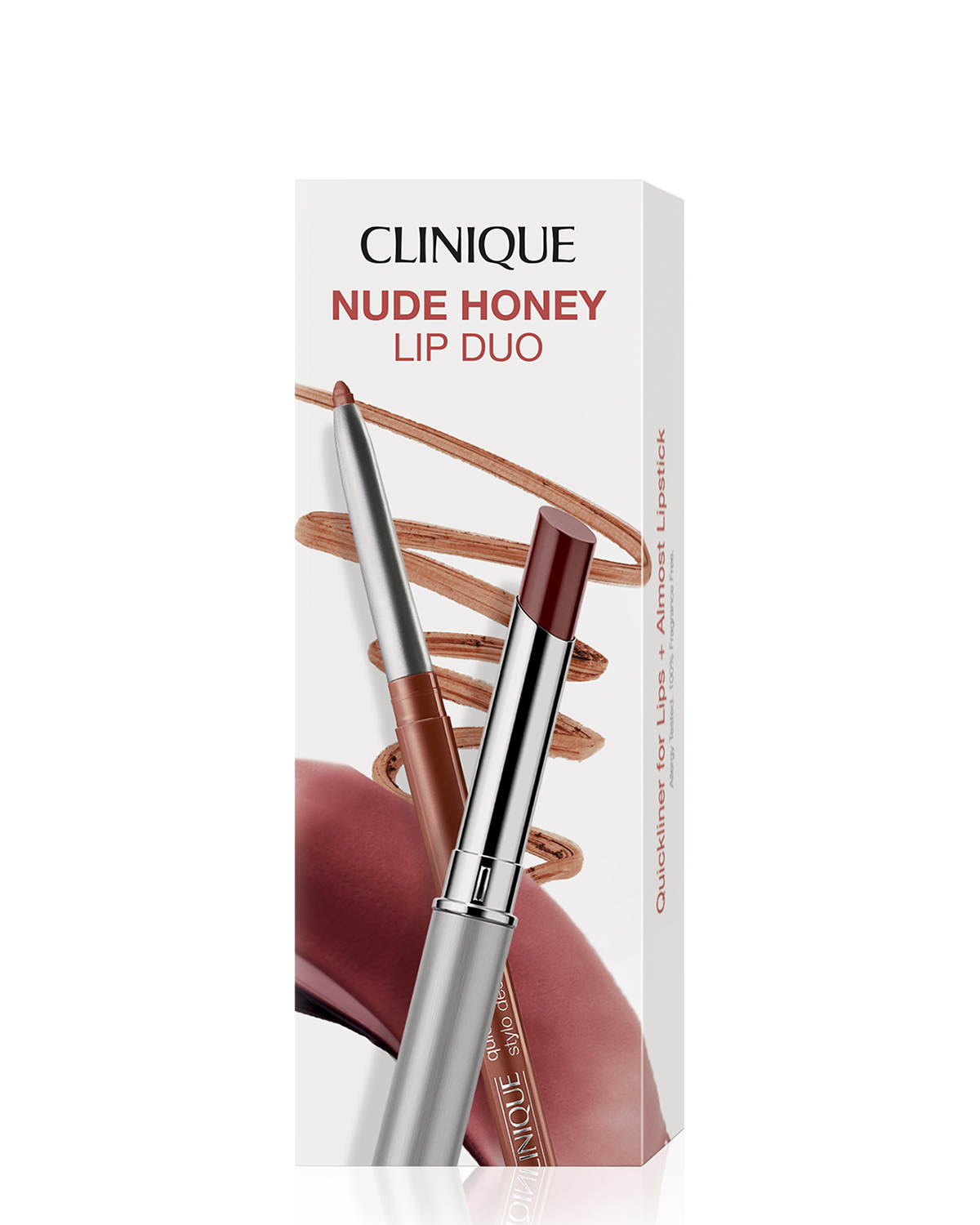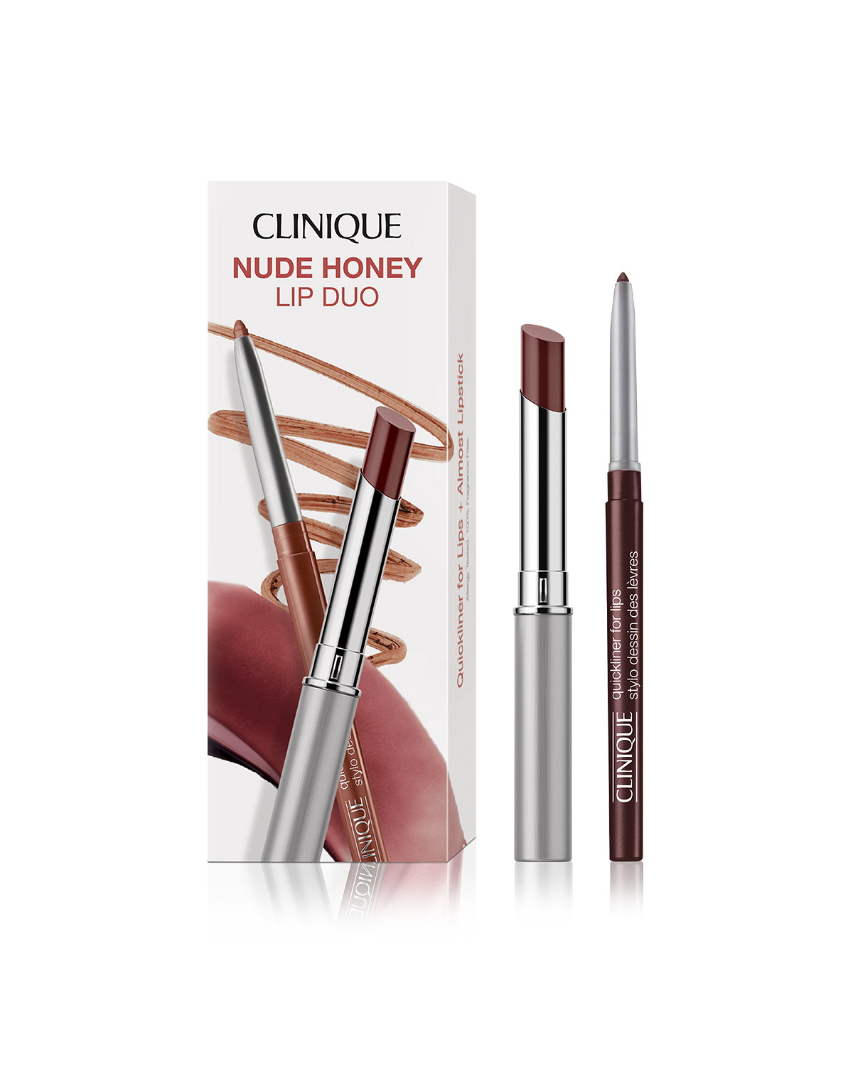 The only nude you need: a surprisingly flexible shade that looks different on every lip. The secret is its perfect mix of warm and cool pigments that blend with your lips for a shade unique to you. This two-piece set pairs Almost Lipstick in Nude Honey with a matching Quickliner™ For Lips for precise definition and a sheer, natural wash of colour.